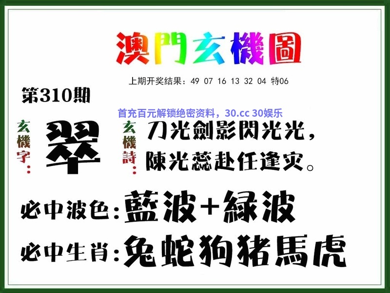 | 310期五肖 | 蛇猪猴虎马 | 开:發00中 |